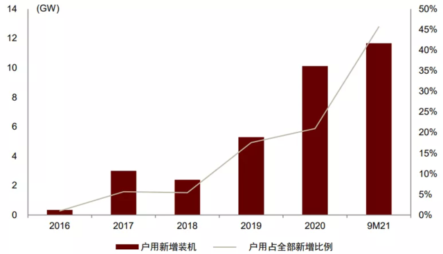 2021年1-9月我國戶用光伏新增裝機11.7GW,同比增長121.4%,在新增裝機中占比達到45.7%;1-6月占比則達到58.9%,超越集中式電站,戶用光伏需求拉動能力凸顯。為什么要關(guān)注戶用光伏?2021年戶用光伏對需求拉動能力凸顯。裝機空間廣闊或為1200GW-2200GW,當前屋頂滲透率低約為1.8%,目前戶用光伏主要集中在山東、河北、河南三省,我們認為隨著產(chǎn)業(yè)鏈價格回歸合理,光伏組件價格[了解詳情]